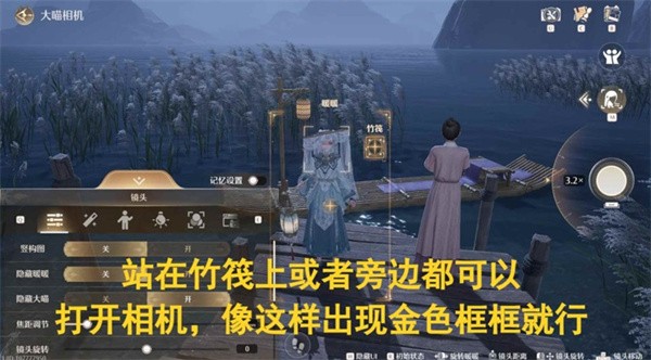 传送至【后山】锚点,附近即可找到竹筏。站在竹筏旁或竹筏上,出现两个金色取景框即可完成拍摄。