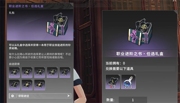完成转化药剂的制作后,前往转职商人进行兑换。选择“职业材料兑换”,然后根据自己的需求选择转化的职业进阶书。值得特别提醒的是,在兑换过程中,一定要确保不会将自己的职业技能书错误地转换成其他职业的书籍。点击右侧的技能书按钮,可以查看当前正在转化的职业进阶书,确保选择正确。