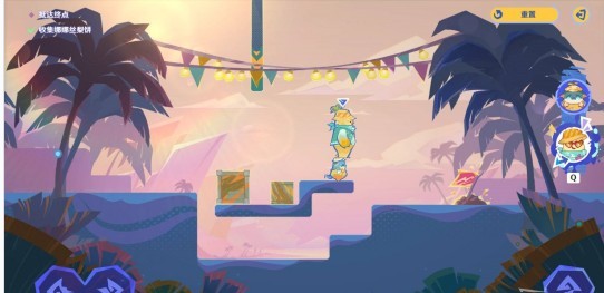 切换到大个子,跳到小矮子头上拾取娜娜丝梨饼。