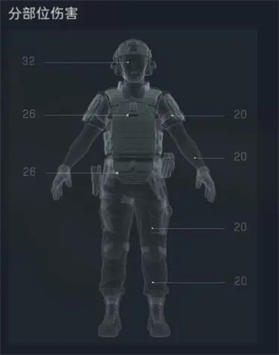 作为一把冲锋枪MP5拥有第一段射程内26点的基础伤害,虽然命中胳膊只有20点伤害。