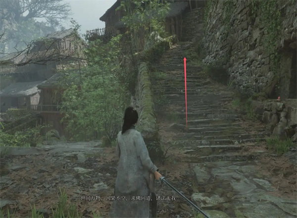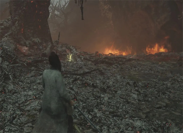 继续前行,你会看到一座石桥。右侧箭头指向桥对岸,那是前往柳秽滩的路线。然而,因为大火封路,目前无法通过。一路走到底,虽然路途中没有什么可收集的,但在尽头处可以获得先神之言【未·覆羽·通法】。