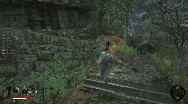 接着继续往前走大路上石台阶,右侧石像处按下Y键(PS手柄中间大白框菜单 xbox手柄左侧菜单键)切出动作,使用祭拜动作获得【蜀神赐物*1】