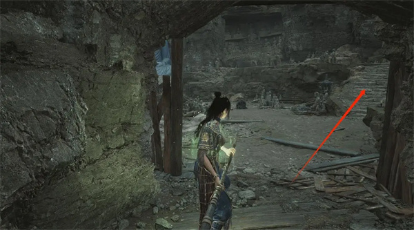 其实,你可以沿着最右侧的箭头往里走,这条路通向一个小区域,连接蜀王祠的侧门。不过,由于路途遥远且危险,容易导致死亡,所以暂时不建议探索。优先走正门,前往蜀王祠神龛。