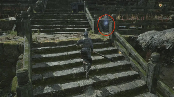 走出熊猫商人处,沿右侧台阶向上走。右边的捷径门还没开,继续沿左边前进,你可以获得【乌黑的药丸*1】。