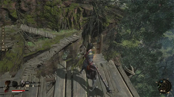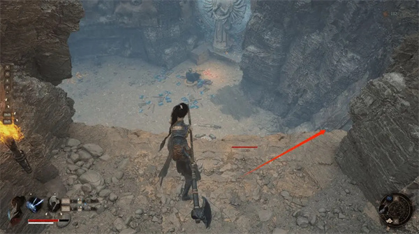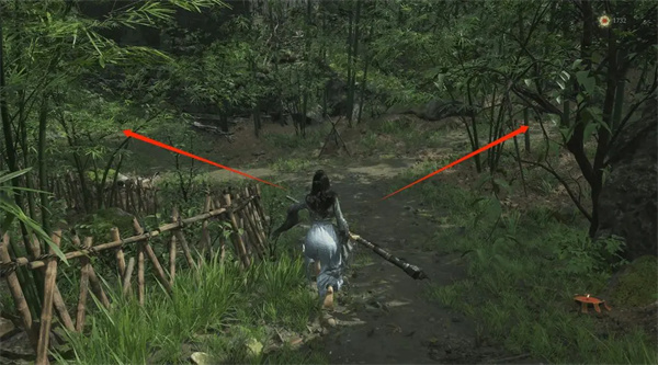 ,这把枪攻击速度较快,适合用来应对大量敌人,特别是在需要快速击杀时非常有效,再沿左侧小路下山。