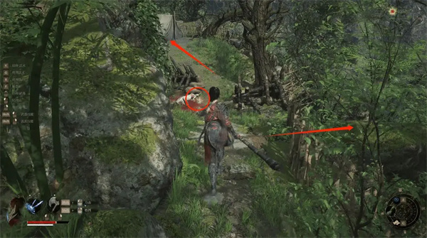 获取宝箱后,回到洞窟,再沿台阶走上去,直走出洞窟。小心洞口藏着一只小怪,刚出洞窟时,你会发现右边有一大片区域,草丛里可以拾取
