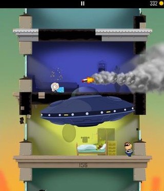 ②、跳到有病床这一层以后就千万不要往下跳了,让老爸自己来回跑,等待UFO的出现