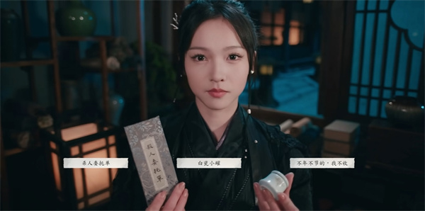 那我们也不能什么都不拿不是,于是索要了她的暗器,而后我们透露出要前往苏府的事情后她便离开了