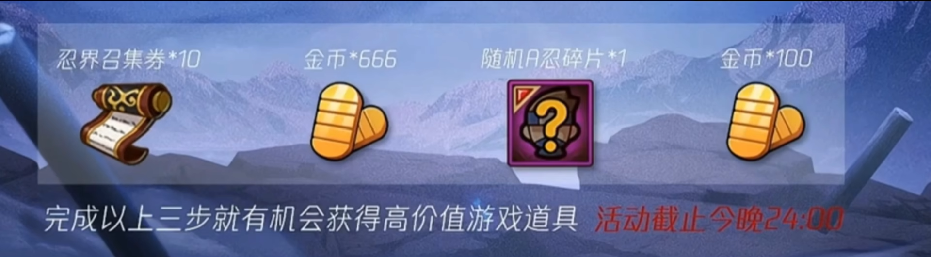 忍界召集券*10+金币666+随机A忍碎片*1+金币*100