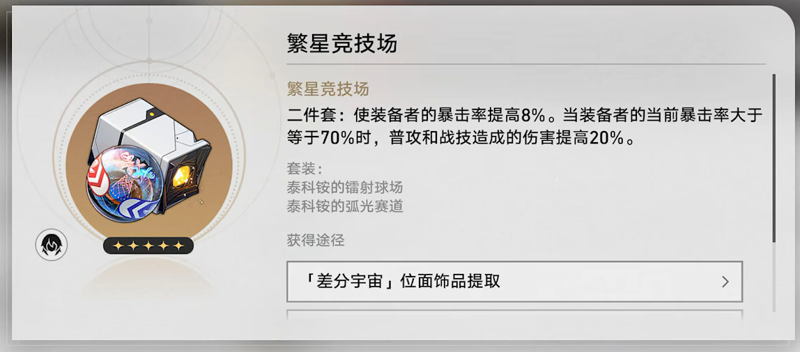 内圈选择就是繁星竞技场,可以提供暴击和战技增伤