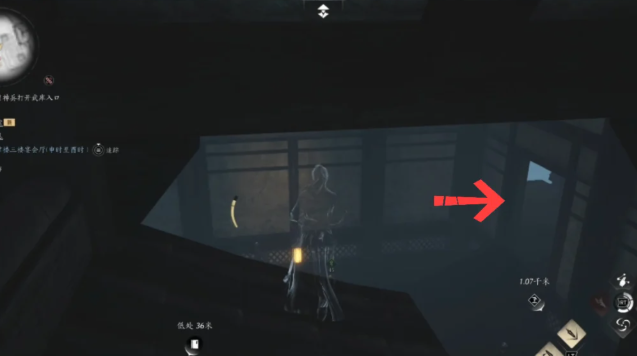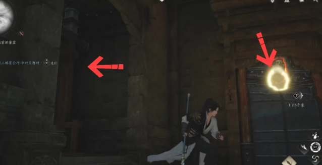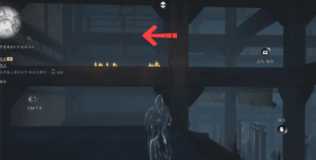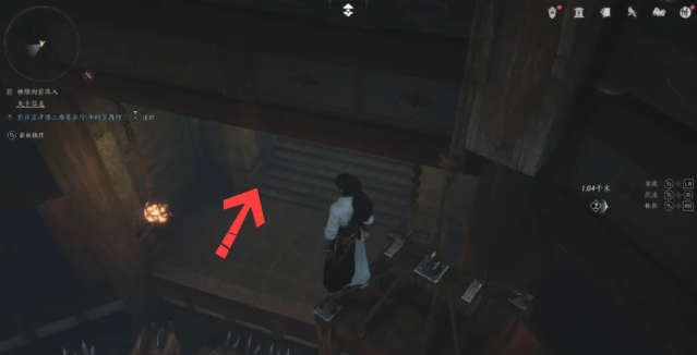 搜索完去另一个大门,这里要爬房梁,从右边上