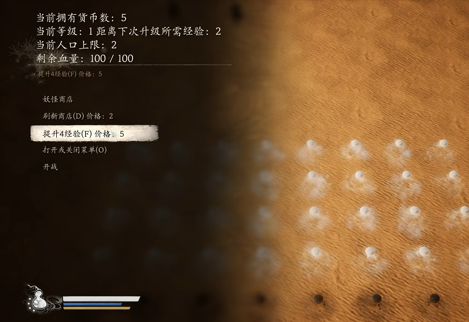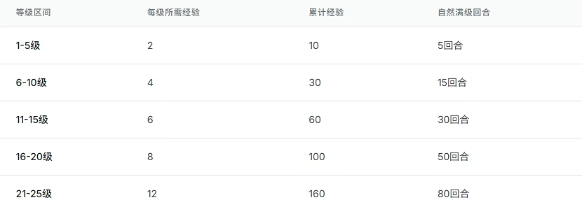 经验与等级系统:采用 25 级分段模型,自然经验每回合 +1,5 金可换 4经验。