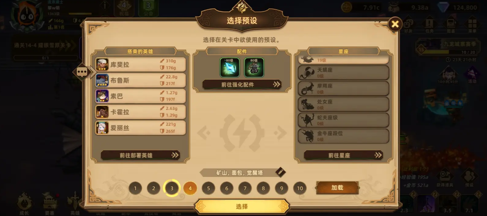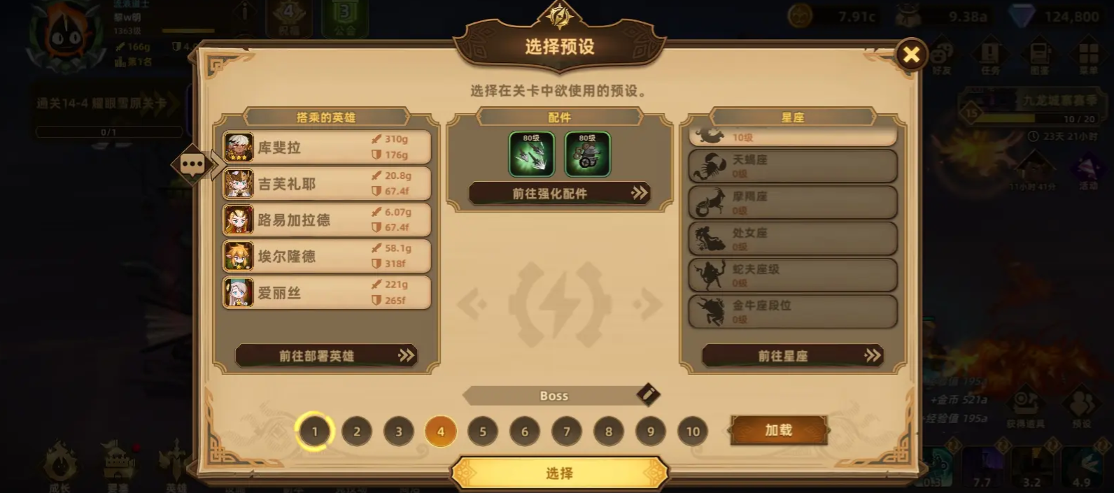 阵容:库斐拉,吉芙礼耶,挨尔隆德(后面关卡小怪太强了,这个用来回血与增加要塞最大生命),路易加拉德(范围清怪),爱丽丝。