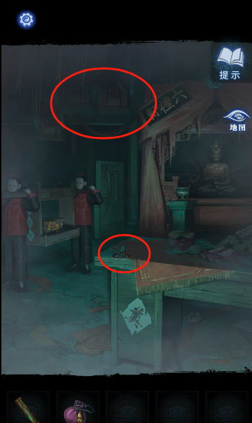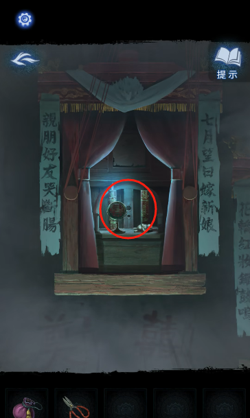 在纸人庙中点击窗户和牌匾可以获得朱砂香囊和花凤蜡烛
