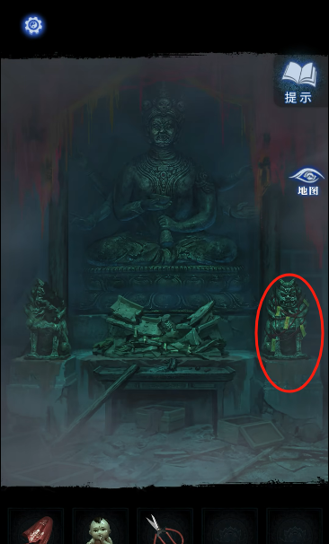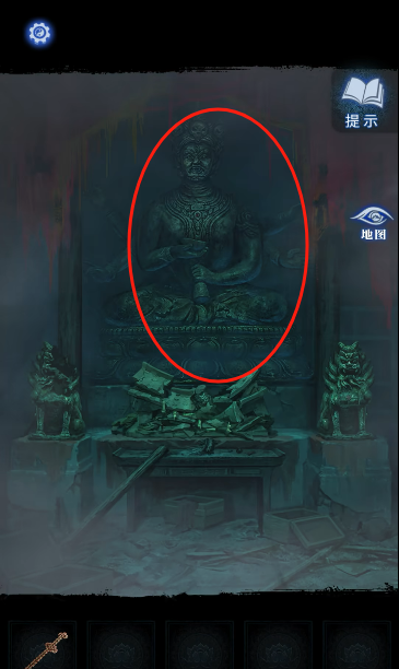 前往奉奘祠,点击正中间的雕像,用古钱剑攻击雕像的头部,随后快速点击屏幕将雕像头部拧下来