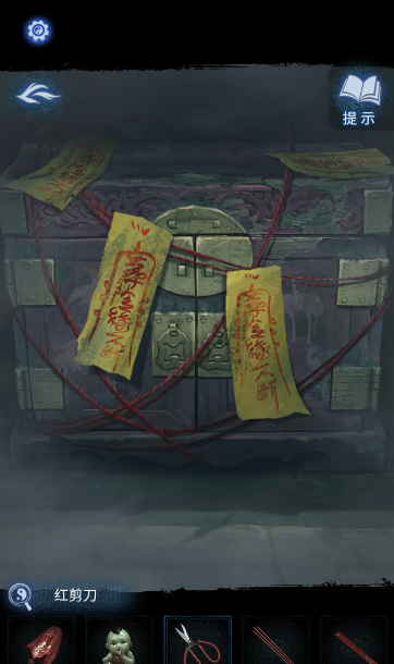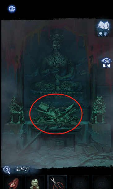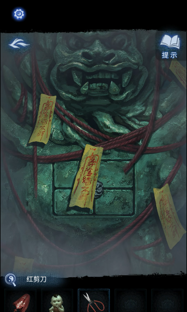 前往奉奘祠点击右侧的石像,用剪刀将缠绕在石像的红线剪开