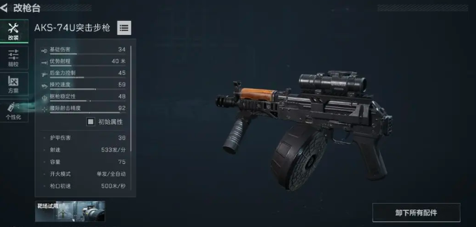 改枪码: AKS-74U突击步枪-烽火地带-6G68E780223NGCLVVEN6F