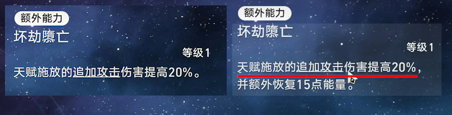 天赋施放的追加攻击伤害提高20%,并额外恢复15点能量。