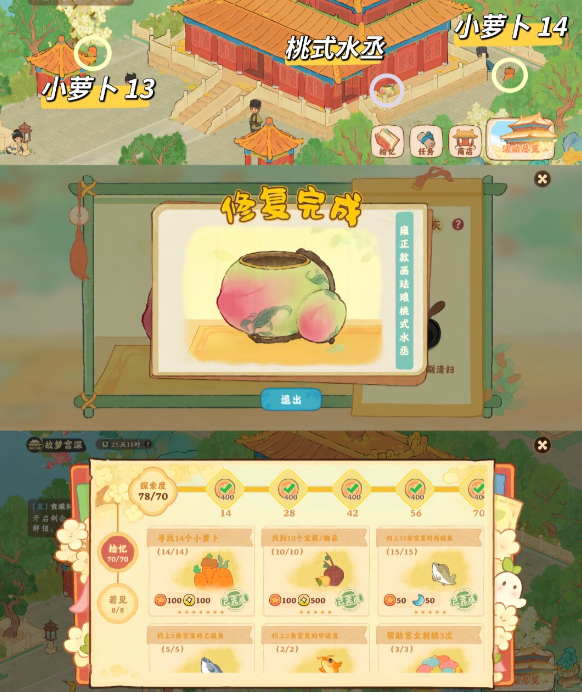 桃源每隔一段时间就会开启一个剧情线,这次开始期待故梦宫深拾忆主题任务刚好在昨天全部解锁啦,还没有来得及完成任务的伙伴们直接看图点击吧,都是按任务开启的顺序放的图哦。完成任务后会获得拾忆币,这些币可以去到兑换商店兑换专属皮肤和各种稀缺资源,但是币的数目有限,家人们按自己最缺的开始兑换哈,建议先兑换主题皮肤,毕竟以后不知道要多久才返场了。