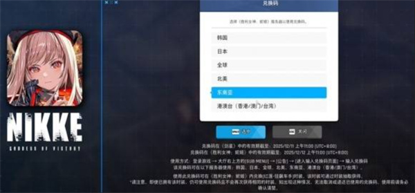 打开宝箱后将弹出平台选择界面,选择你所使用的《妮姬》大区平台进行绑定(如Global或KR)。