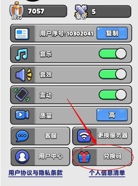 进入游戏,完成新手引导,通关第四关之后,兑换入口开启。