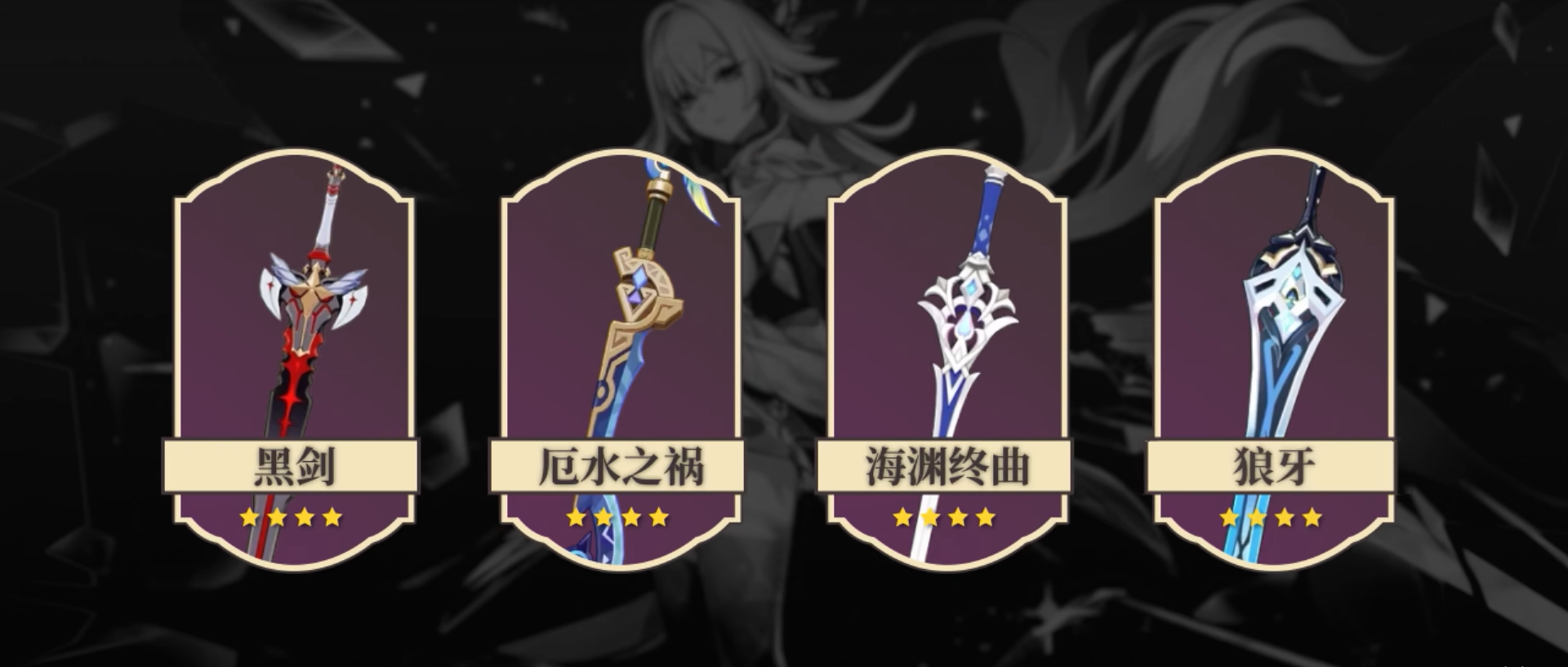 四星的话,可以用黑剑、厄水之恶、海渊终曲、狼牙等