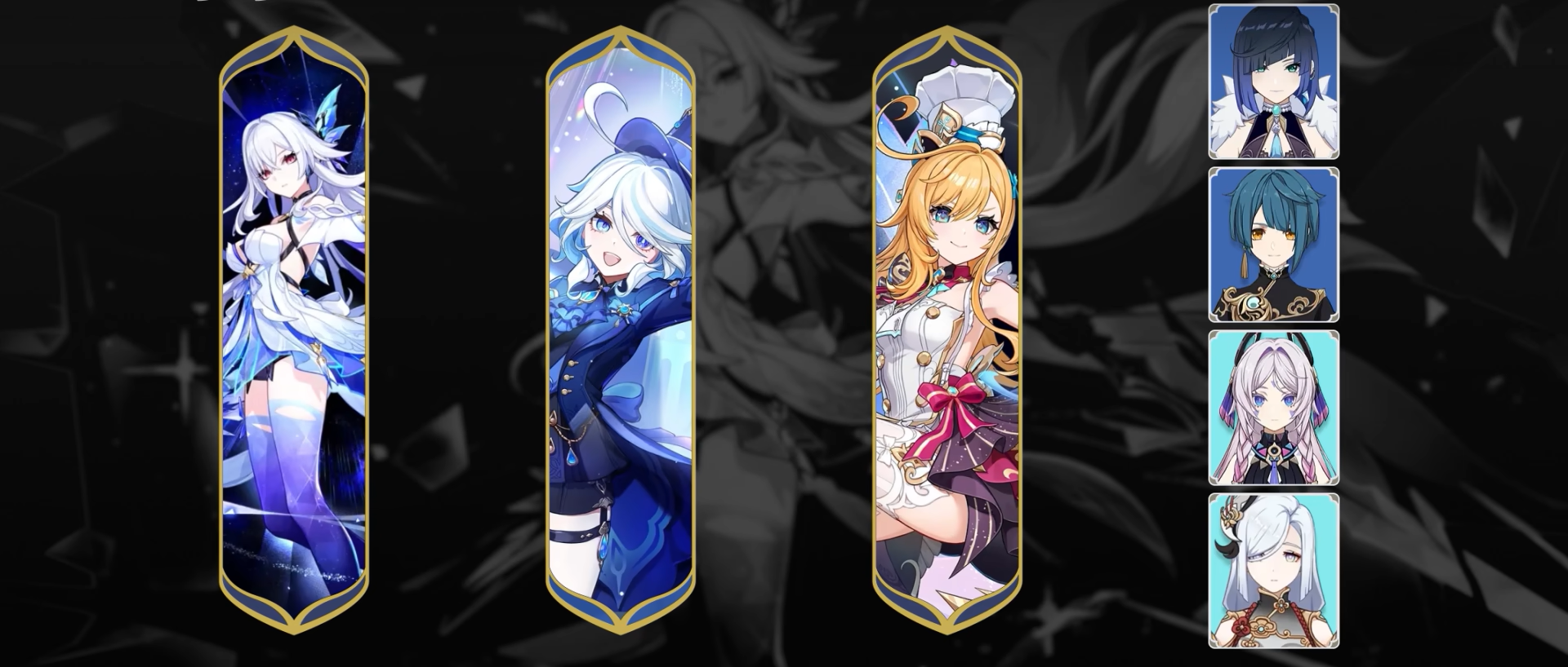 前面三个角色最好就是丝柯克+芙宁娜+爱可菲,如果没有芙宁娜的话,也可以替换成新角色塔利雅,剩下一个角色可以考虑夜兰、行秋、茜特菈莉、申鹤等角色