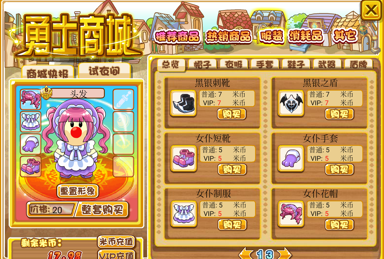 1.女仆套装(面板之神,奶妈首选pve套装,在绝大部分场合都保证了奶妈的生存能力)pve首选pvp可用,获取途径为商城购买白板/市场购买打孔成品,女仆套装的盾牌为王国武器店星豆购买的猫爪盾。(PS:锻造有一块盾牌叫钢爪盾,与猫爪盾外观和属性神似但触发不了套装效果,注意辨别)