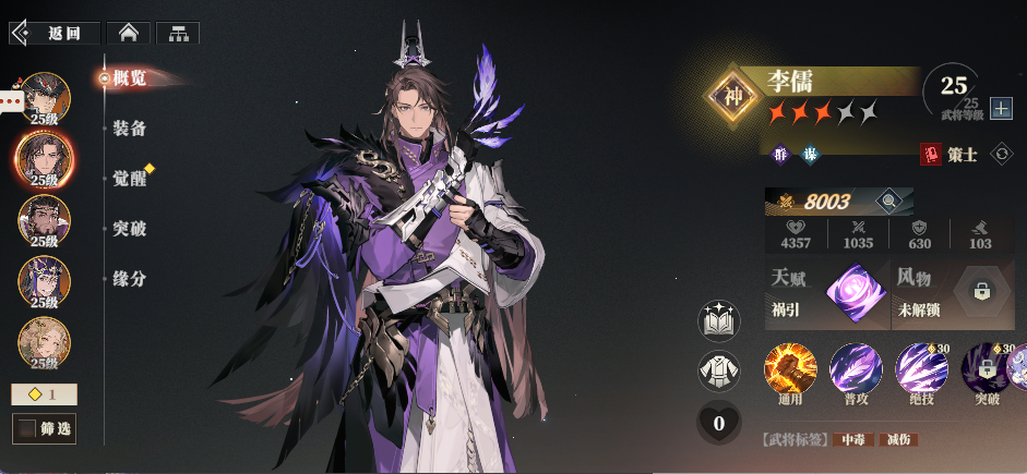 李儒超强的推毒能力,能够快速的给对面造成范围性的毒异常,同时造成大量伤害,在毒BUFF消失后,可以快速补毒。