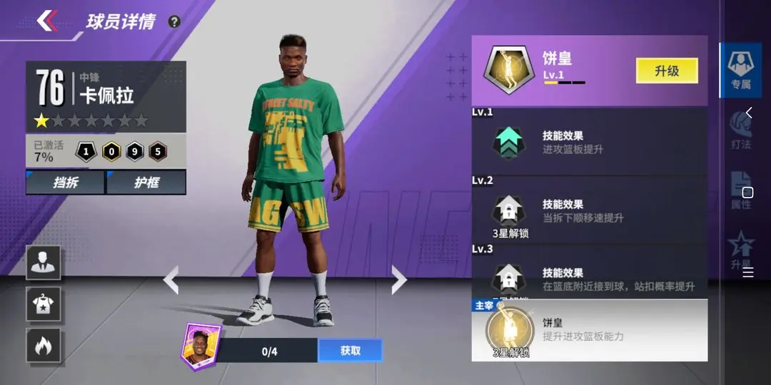 功能性更偏向于得分,主要还是靠挡拆下顺和进攻篮板后的二次进攻得分,中低端局还能作为偷分手,高端局来讲,整体的技能模组还是略微有点难登大雅之堂