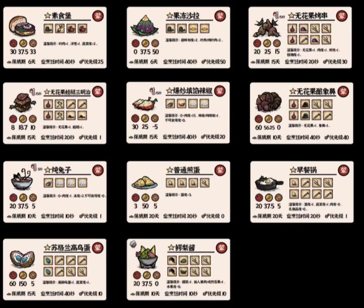 饥荒新家园食谱大全中为玩家带来了所有的食谱配方介绍,玩家可以参考饥荒新家园食谱大全当中的配方来获得游戏当中的所有的食物,还没有获得饥荒新家园食谱的玩家可以在这里的全食谱配方介绍当中制作出美味的食物。