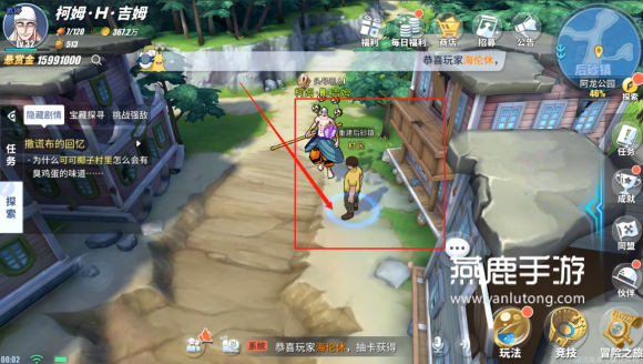 1、首先在阿龙公园中间位置,找到村民再次与他对话;