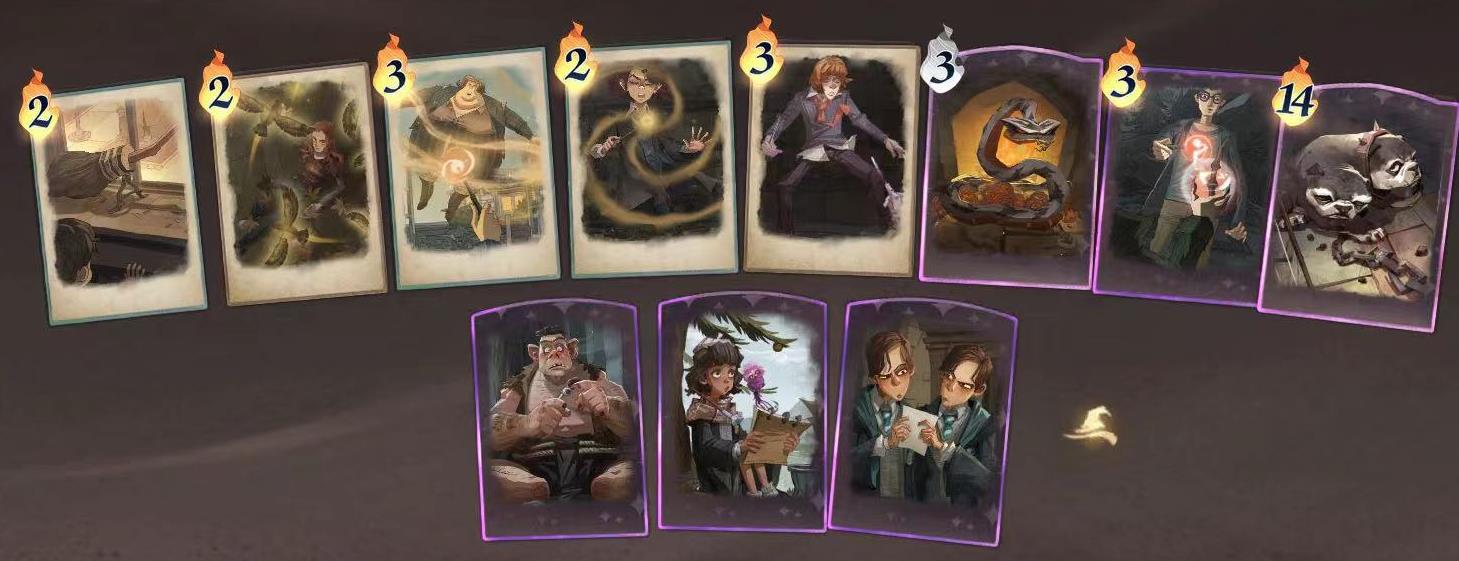 基础卡:飞天扫帚+万弹齐发+充气咒+飞沙走石+昏昏倒地+火灰蛇+除你武器+三头犬宝宝