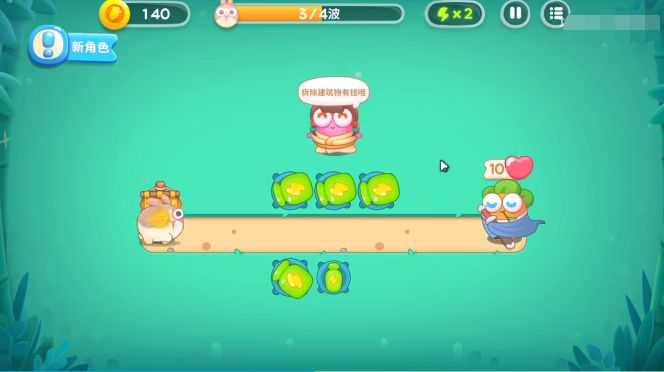 1、将炮塔先种下去,医工种植三个炮塔。将其升到满级。点击后面的笼子先去将笼子打破救出萝卜妹妹。
