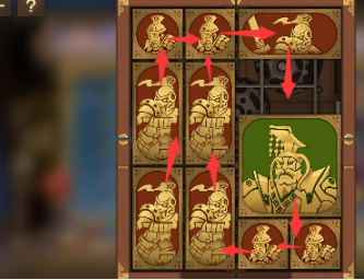 8、最后下方的长方形向上移动到底,就可以给将军留出通路,我们就能过关了。