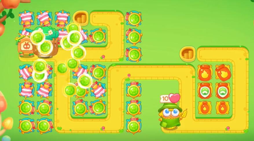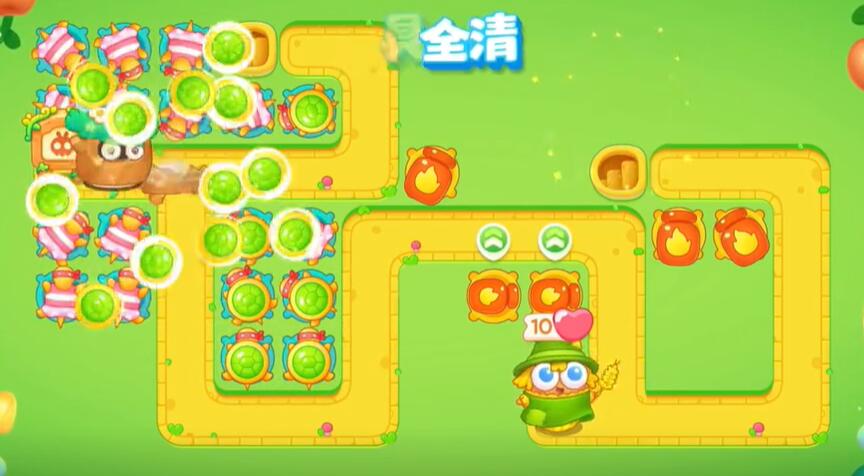 5、补充更多的乌龟对兔子进行攻击,在右侧补充喷火器清理掉所有的障碍物。