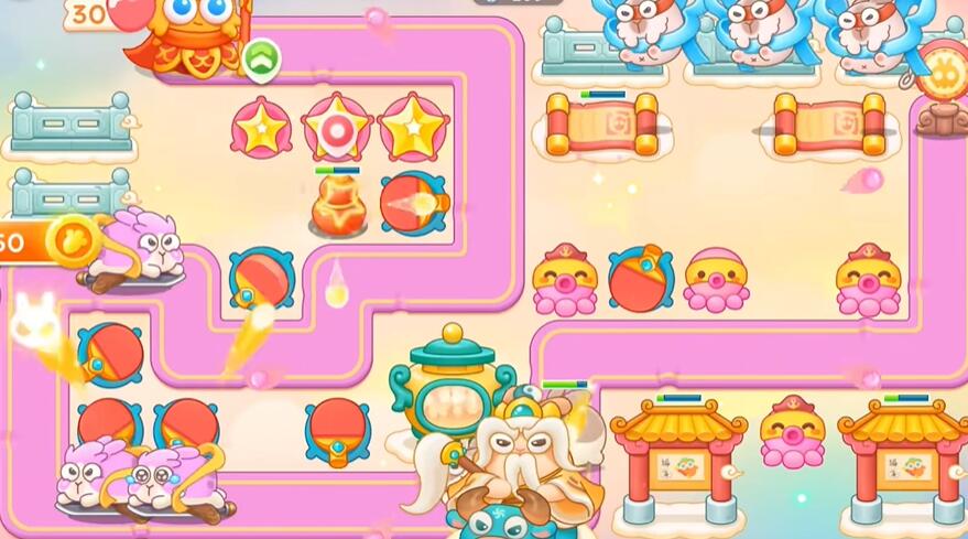 8、老君出来之后,章鱼打萝卜门,乒乓球打老君,求稳的话后续换成闪电和章鱼,二级或者三级星星一排。