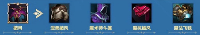 披风可以升级为:涅槃披风、魔术师斗篷、魔抗披风、魔法飞毯