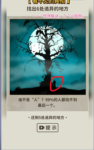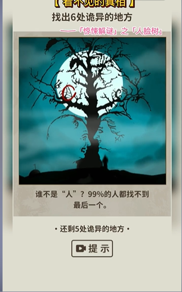 看不见的真相人脸树攻略,很多玩家都喜爱这款最新发布的悬疑搜索的小游戏,具有很多关卡每一个都是不同图画,玩家需要寻找到所有的诡异位置,小编带来了看不见的真相人脸树攻略中的攻略来一起看看寻找吧!