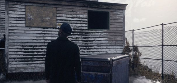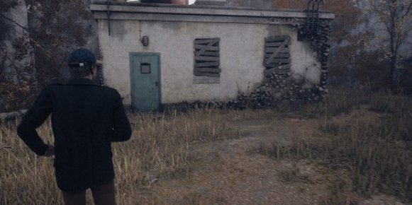 6、之后打倒灯塔屋门但进不去,将垃圾箱拖到窗户旁后爬上去可爬进窗户然后从里面开门。