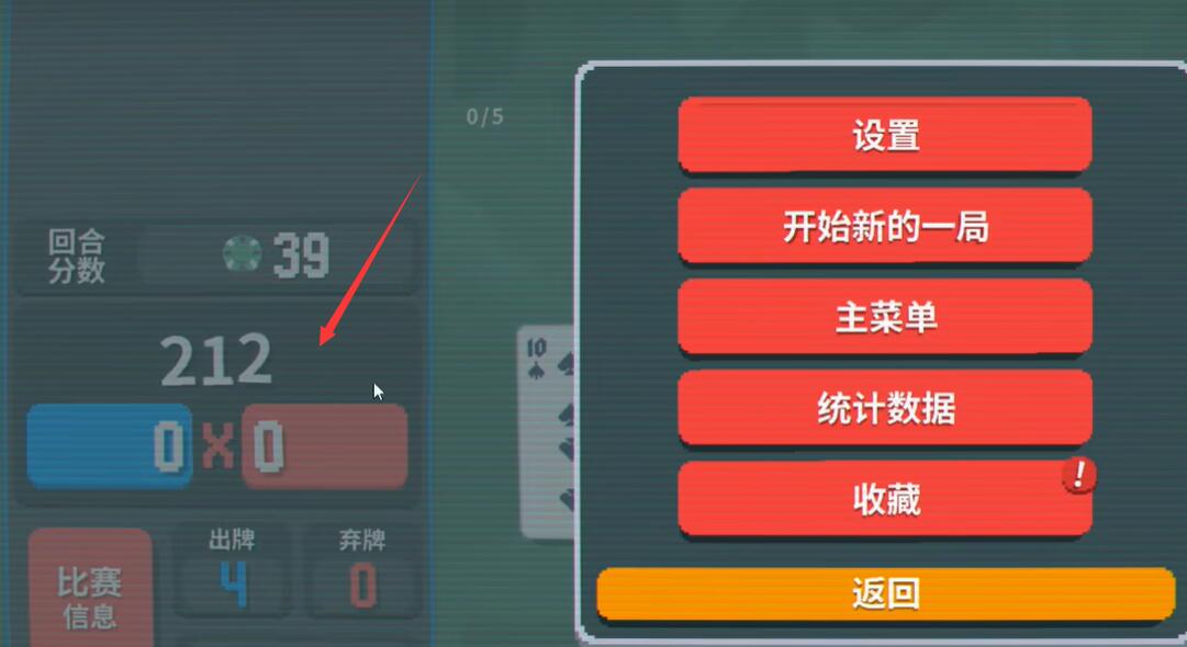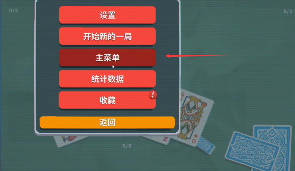 3、在算完分数之后会进行抽牌,此时在抽完牌之前按下esc,点击其中的主菜单回到主菜单界面。