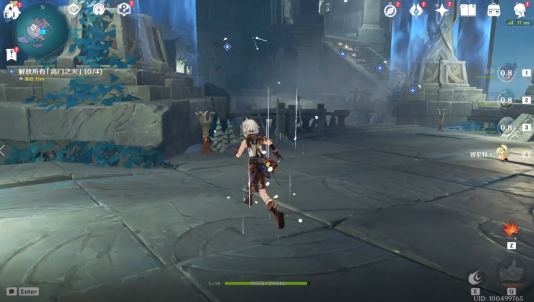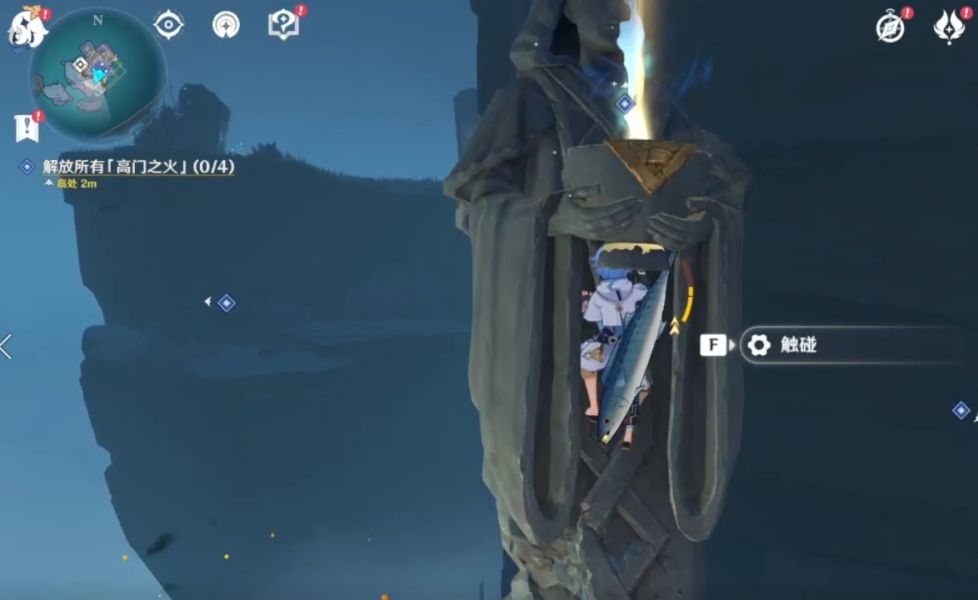 4、前往指定地点,使用火系角色点亮四个雕像的火盆,击败刷出来的怪。