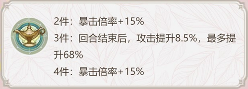 2、灯神的呼唤是比较慢热的契印,主属性是暴击倍率,如果想要攻击力全部增加,需要8个回合,非常适合后期资源够的培养,推荐给歌剧魅影、百鬼夜行替代。
