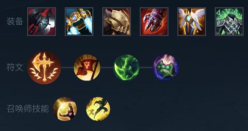 出装:黑色切割者+海克斯·水银之靴+亡者的板甲+斯特拉克的挑战护手+守护天使+振奋盔甲