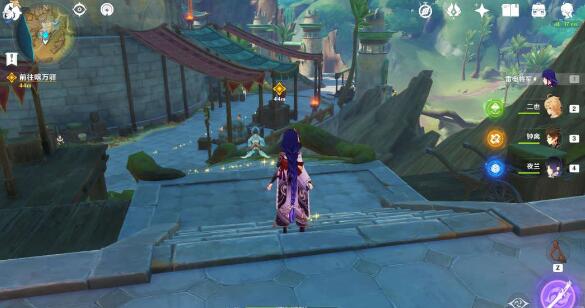 1、首先我们传送到喀万驿如图所示的锚点,往地图东北方向走。
