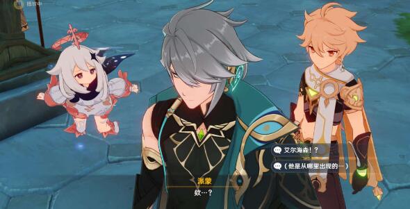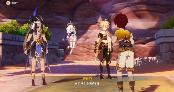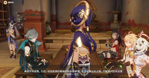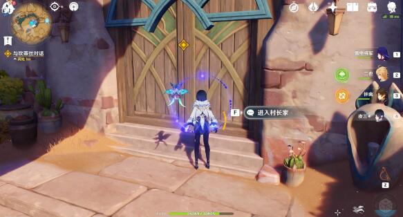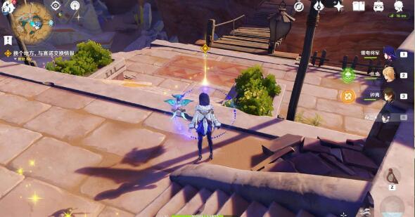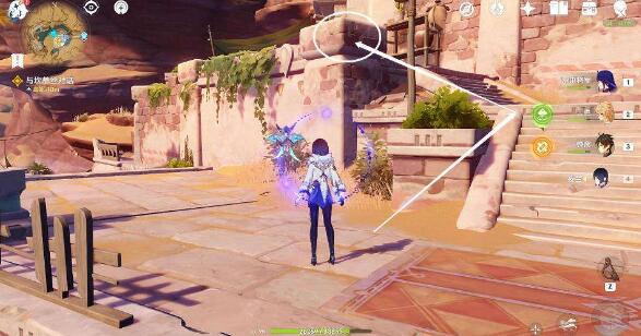 2、前往如图所示指引位置,与派蒙对话,提起防沙壁。