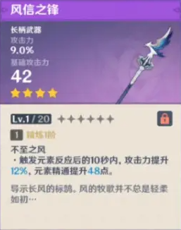 以上便是小编为大家带来的原神风信之锋满级属性介绍,和申鹤、赛诺比较适配,相信现在你已经了解到了长柄武器风信之锋的属性,更多武器属性敬请关注手游网。