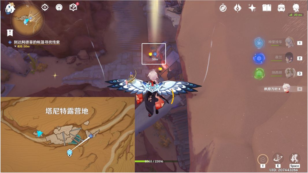 1、传送塔尼特露营地,往地图西北方,向下飞,前往图中帐篷内。