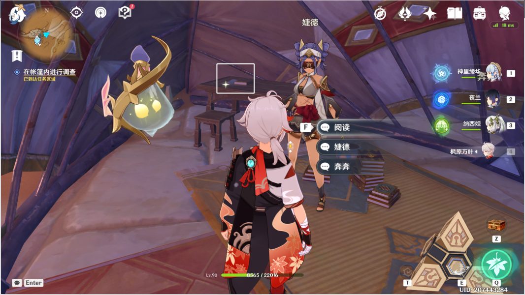 15、传送塔尼特露营地,飞到帐篷内。