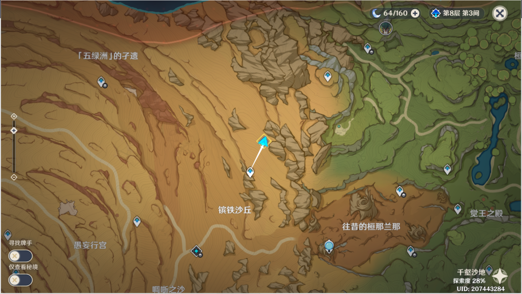 6、传送镔铁沙丘锚点,往地图东北方走,前往信件中的密会地点。